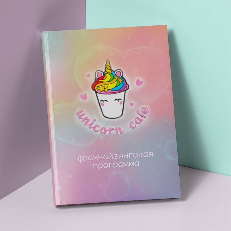 Упаковка франшизы оригинального формата кондитерской в "единорожьем стиле".